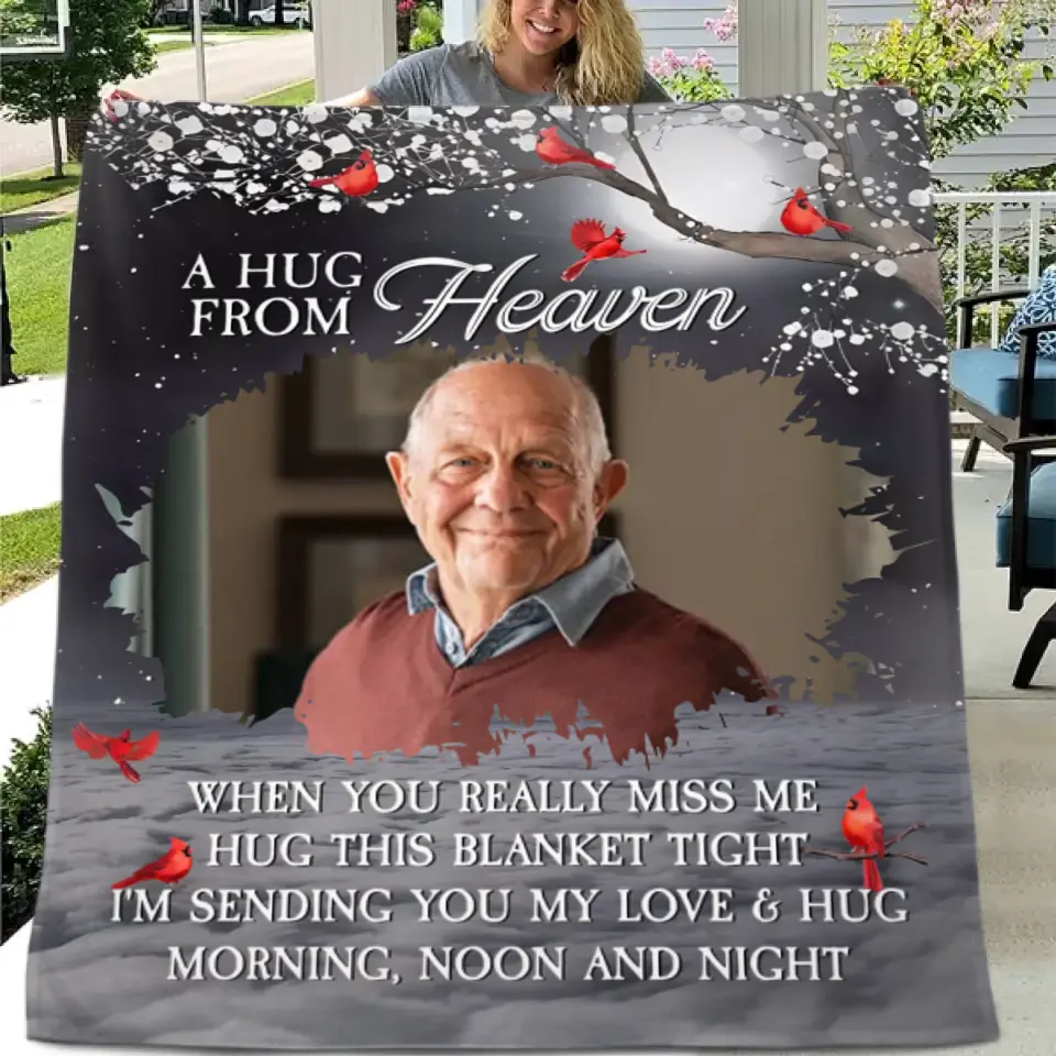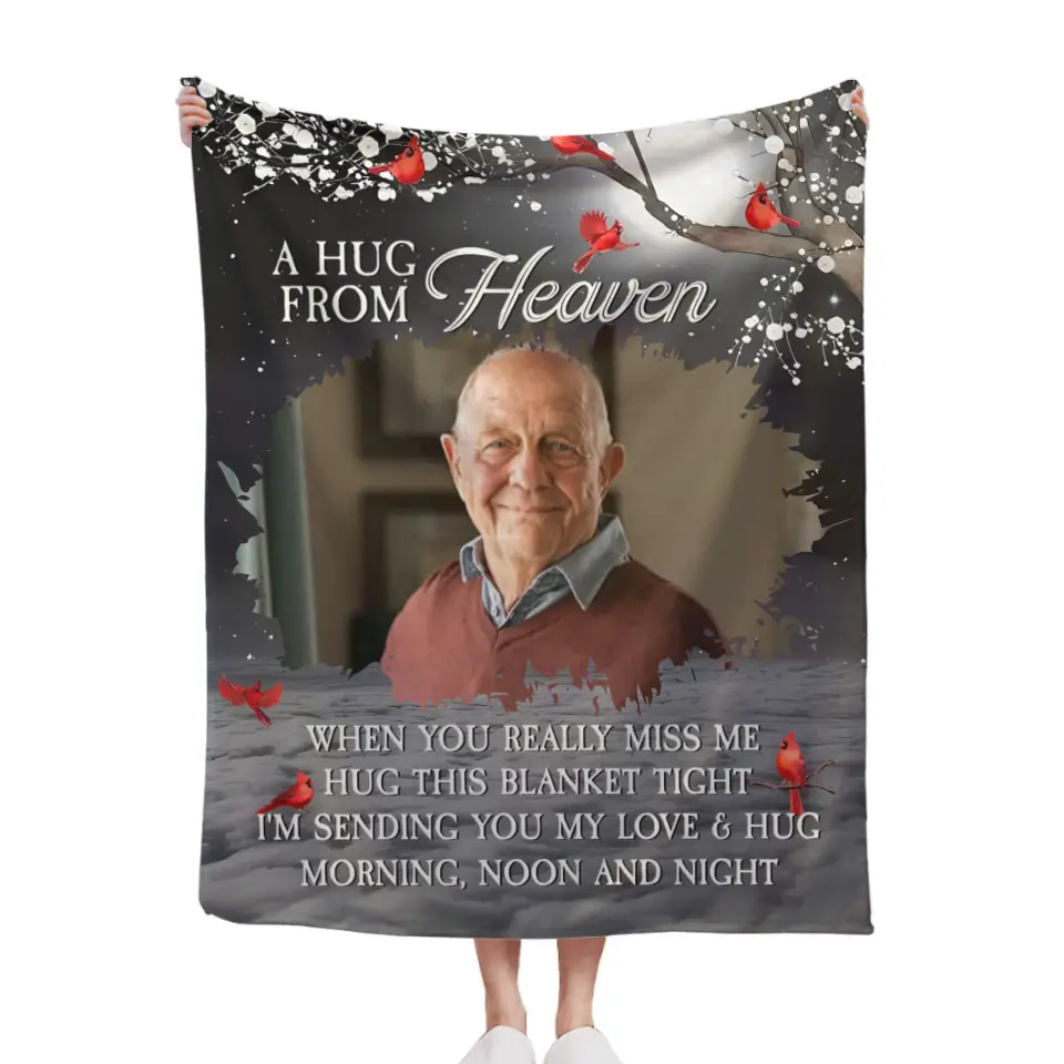 A hug from heaven - a personalized photo flannel blanket