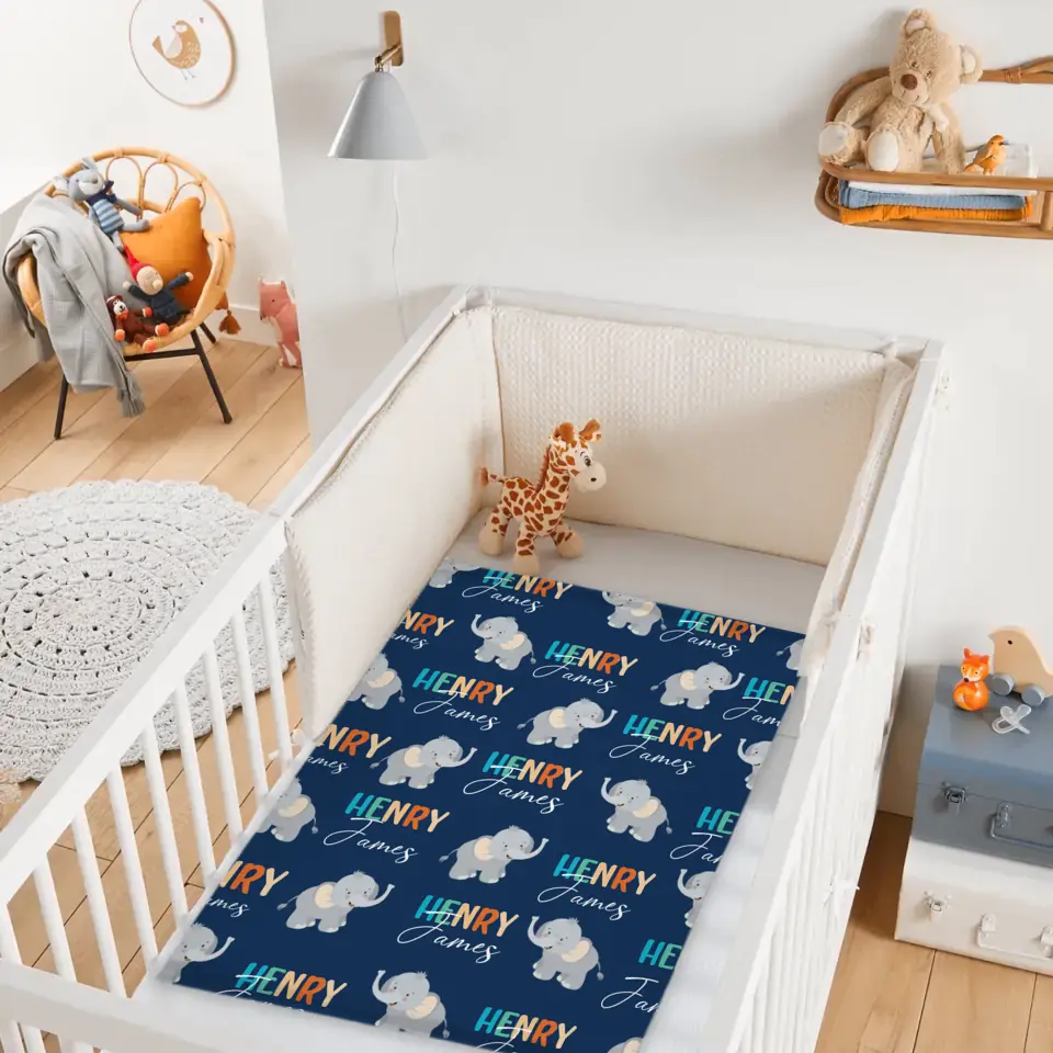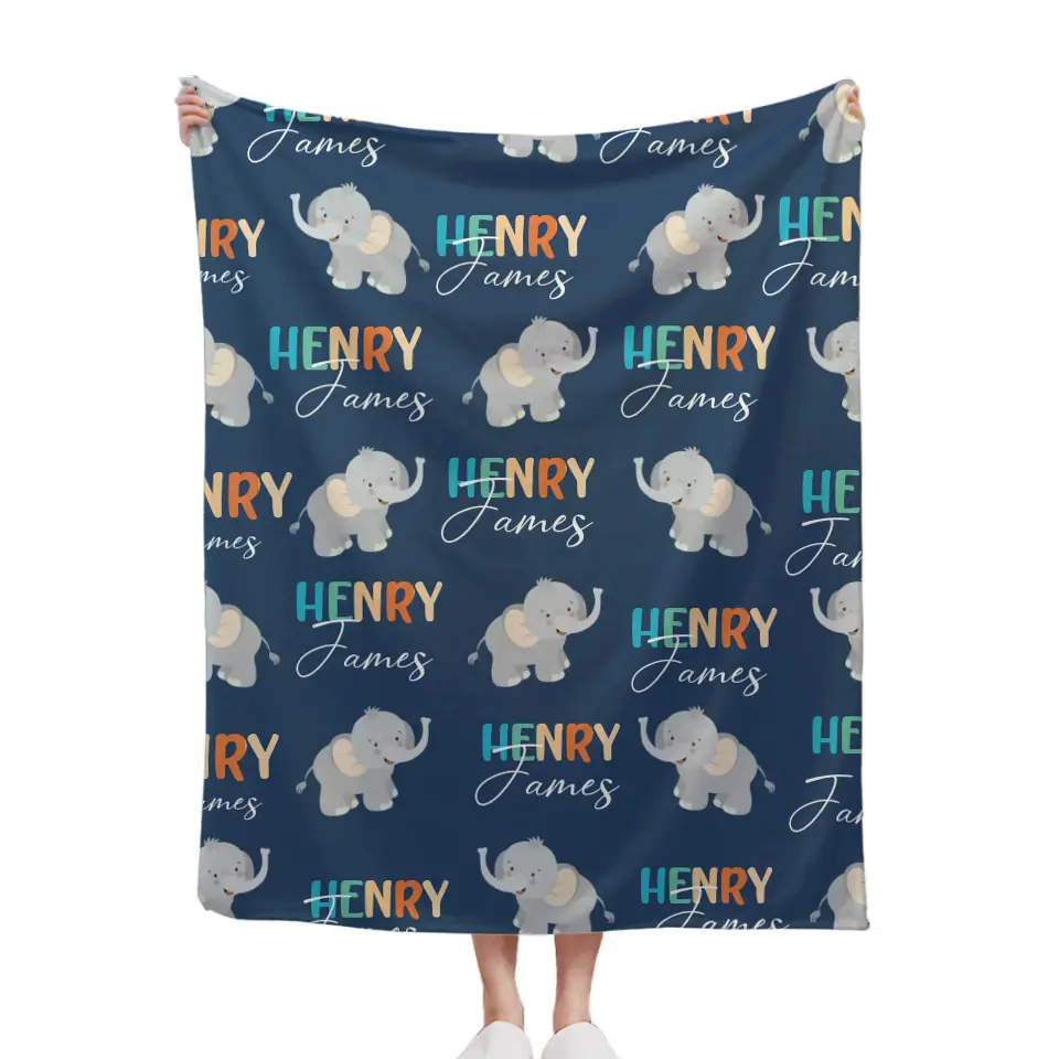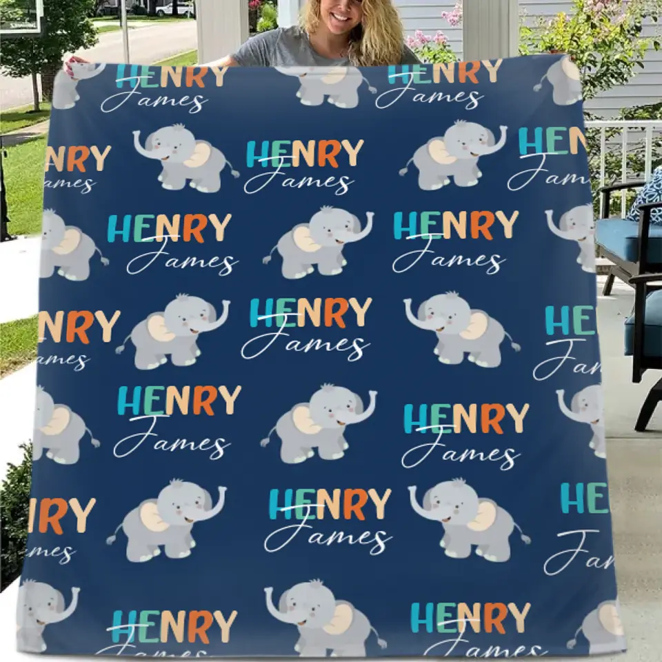 Boy Personalized Elephant Baby Blanket, Custom Name Gift for Kids