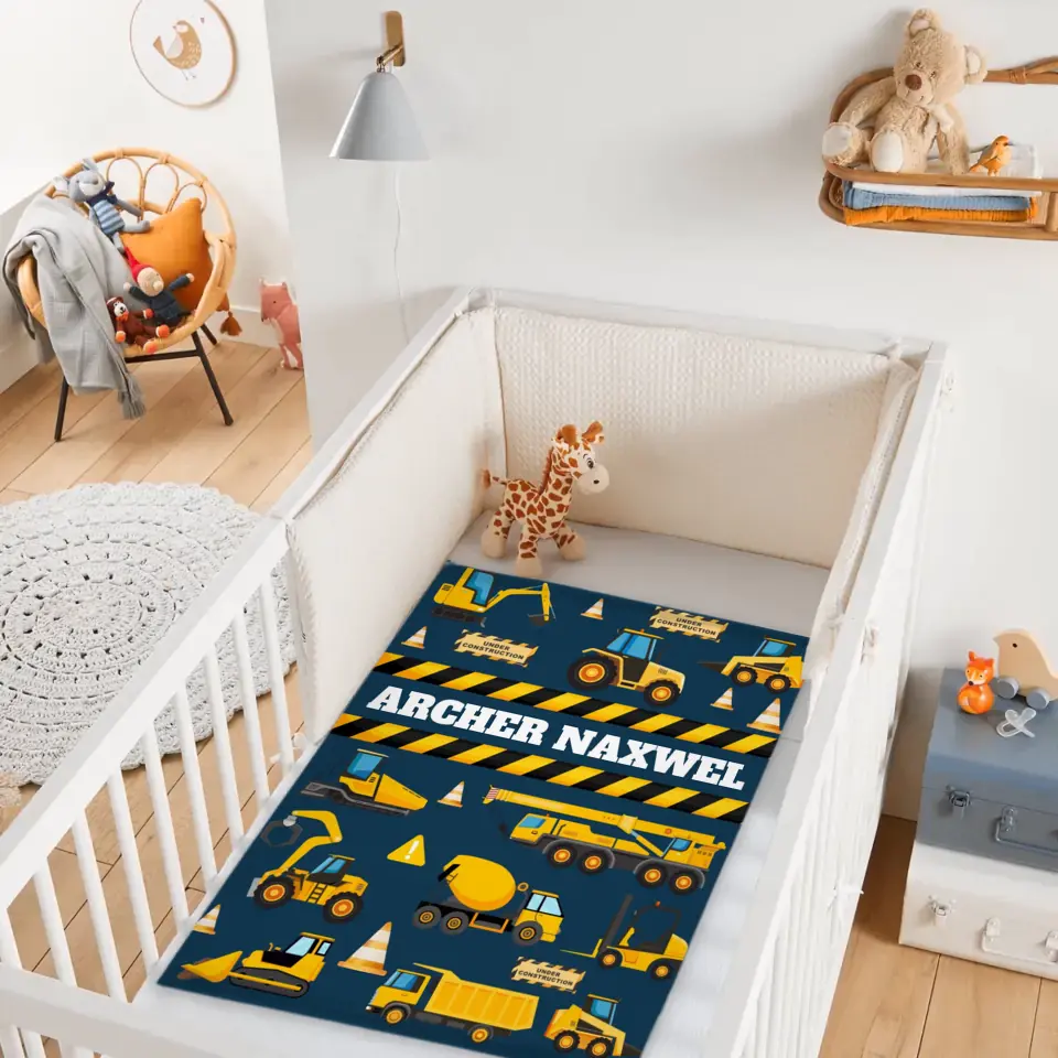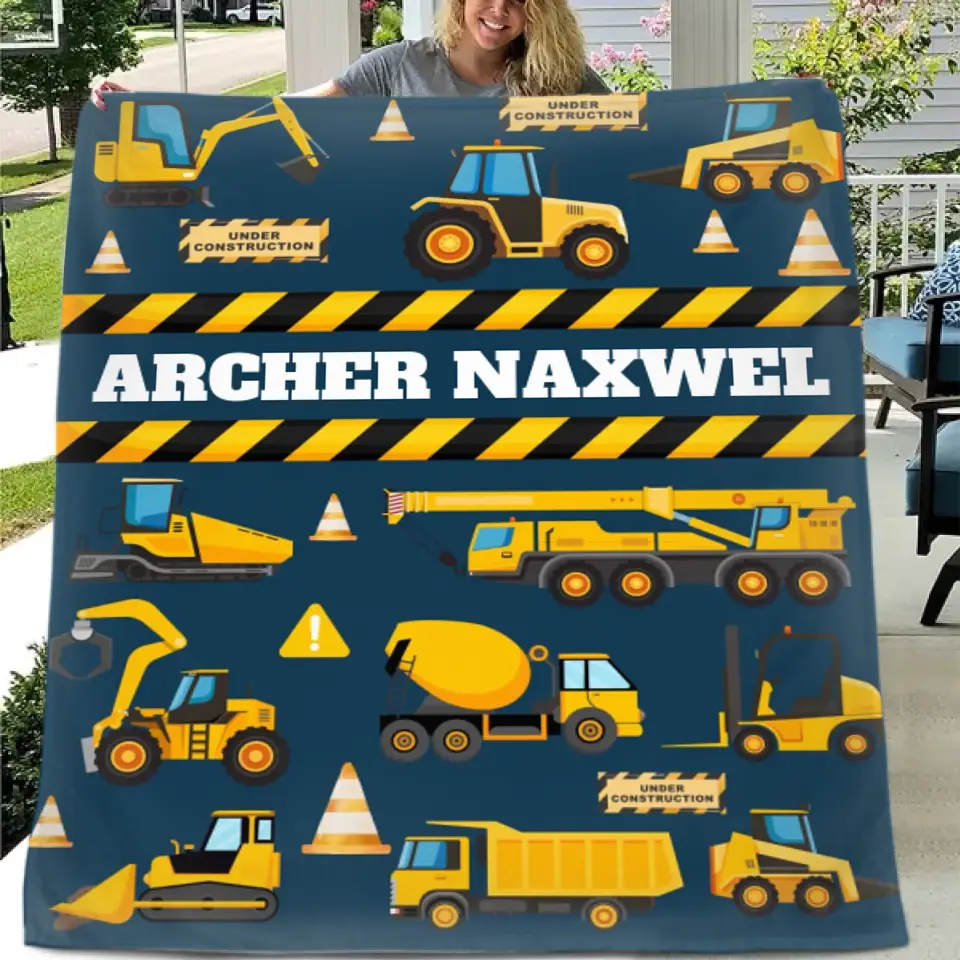 Construction Site Excavator Name Customized Baby Blankets
