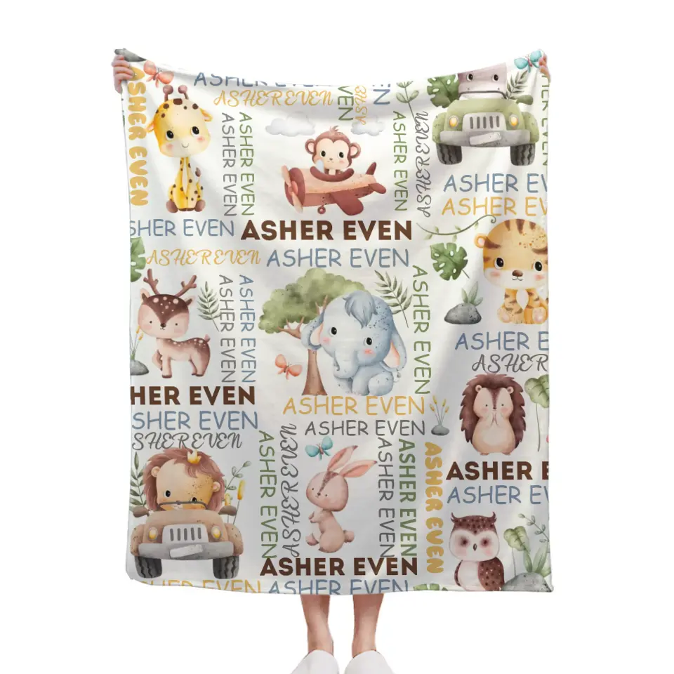 Custom Blanket with Name,Personalized Custom Baby Elephant Blankets