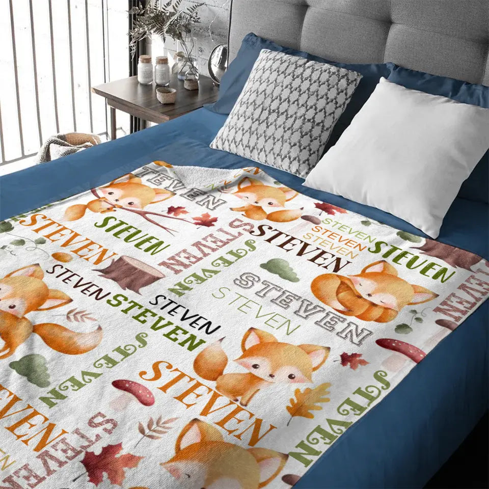 Custom Blanket with Name,Personalized Custom Baby Fox Throw Blankets