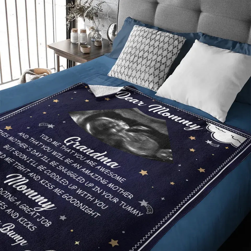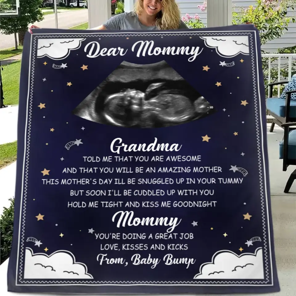 Custom Photo Hold Me Close To You - Family Personalized Blue Blanket - Baby Shower Gift