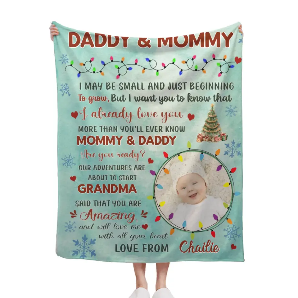 Custom Photo Personalized Baby Blanket - Dear Mommy And Daddy Family