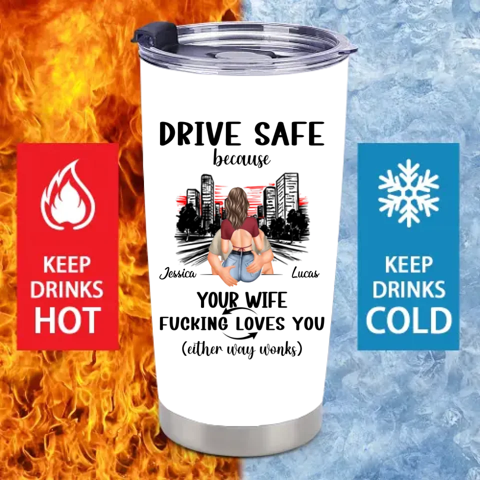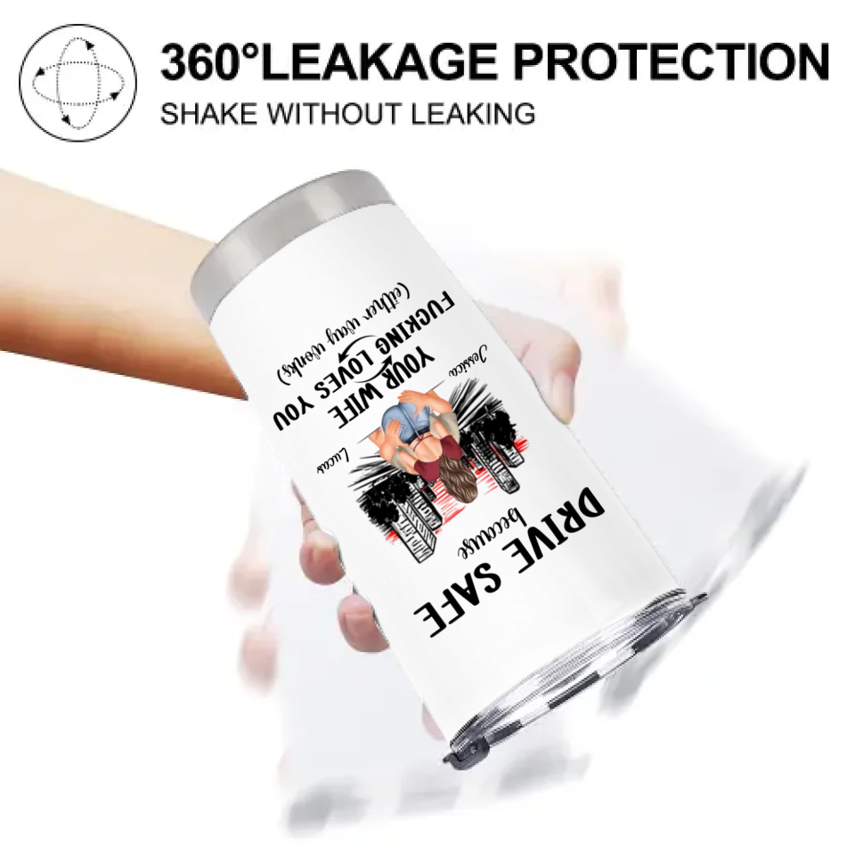 Customized Safe Driving Reminder Car Cup - Personalized Name and Character Safe Driving Themed Couple's Car Cup - A Gift For Husband,Boyfriend