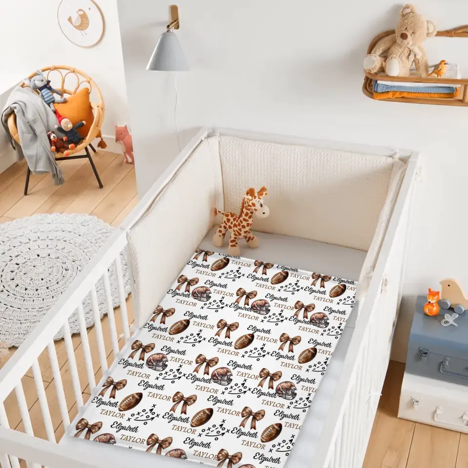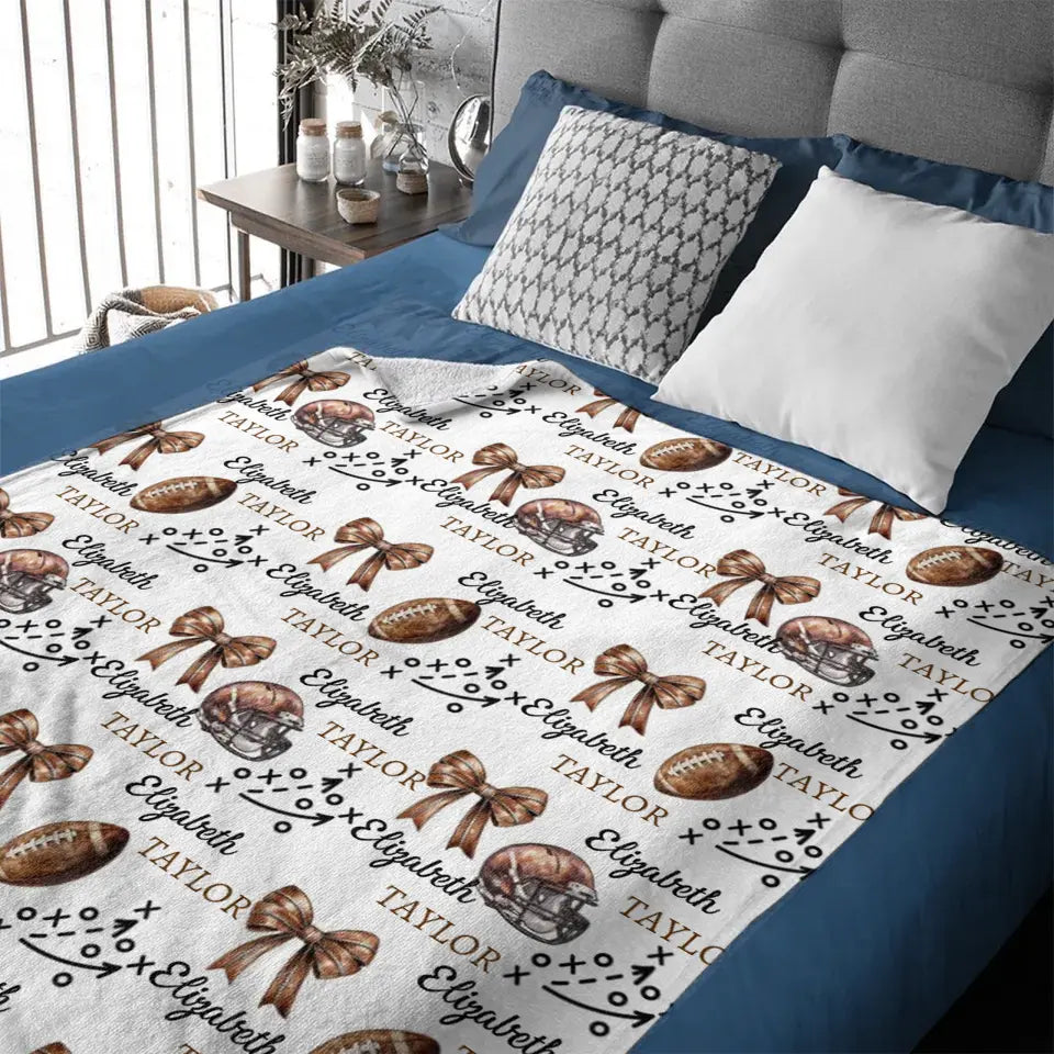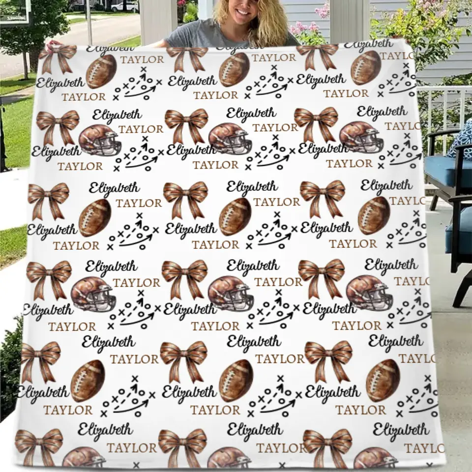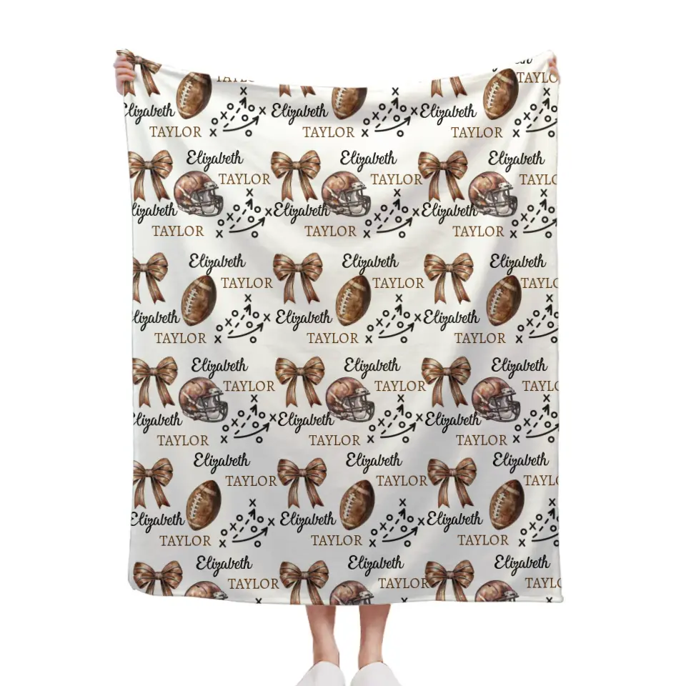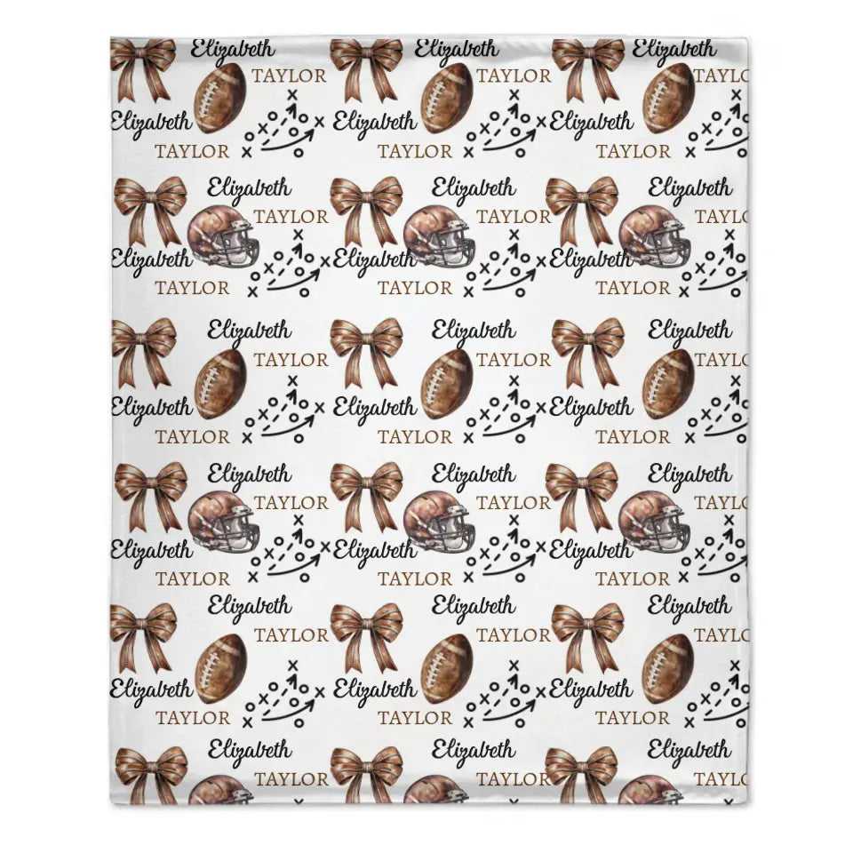 “Gridiron Grace” - Personalized Name Custom Soccer Bow Baby Girl Blanket - Gift for Newborn Baby Girl