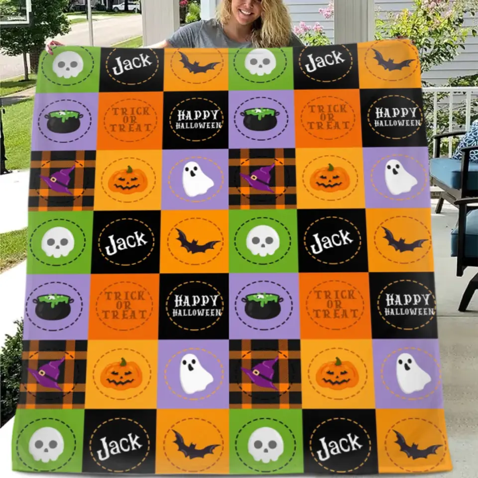 Halloween Night - Trick Or Treat Personalised Name Blanket - Gifts for Children,Friend