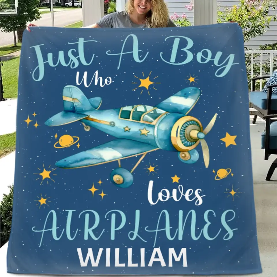 Just A Boy Who Loves AirPlanes - Personalized Blanket Gifts for Boys