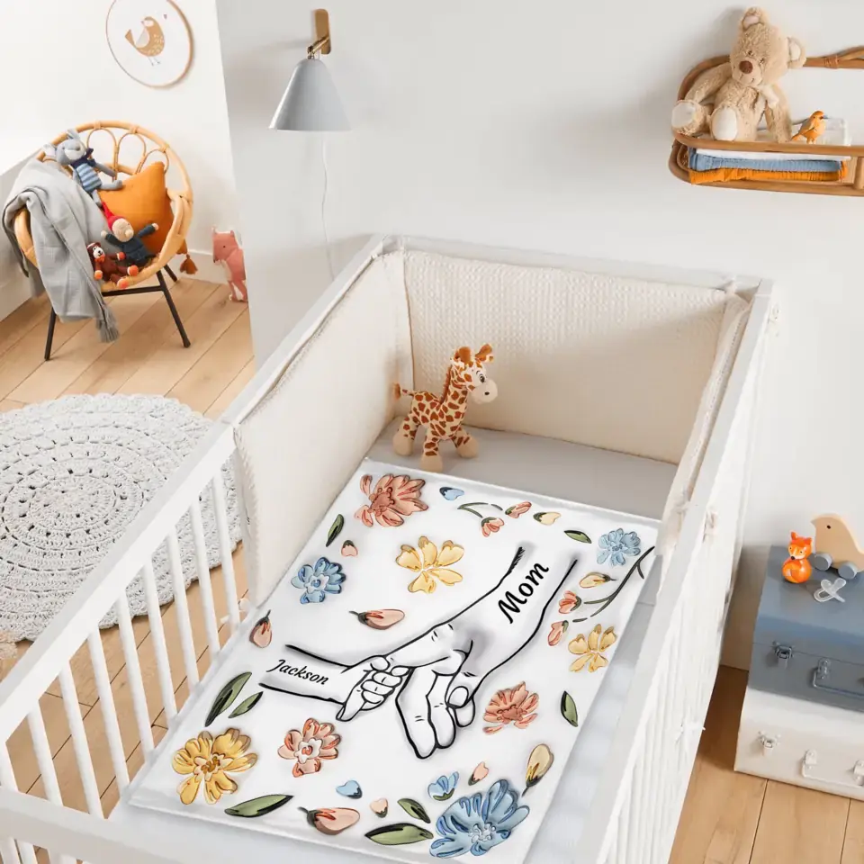 Mom's Love Hands Holding Pastel Floral - Personalized Blanket