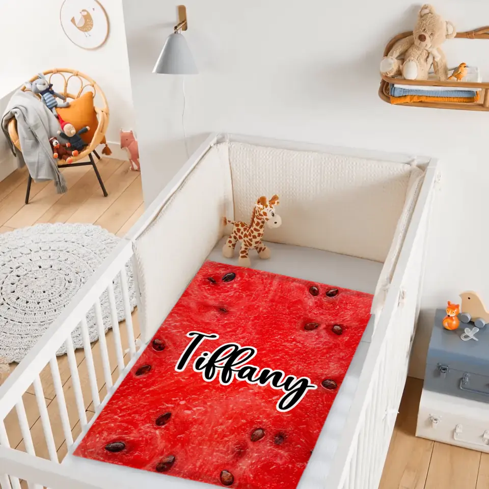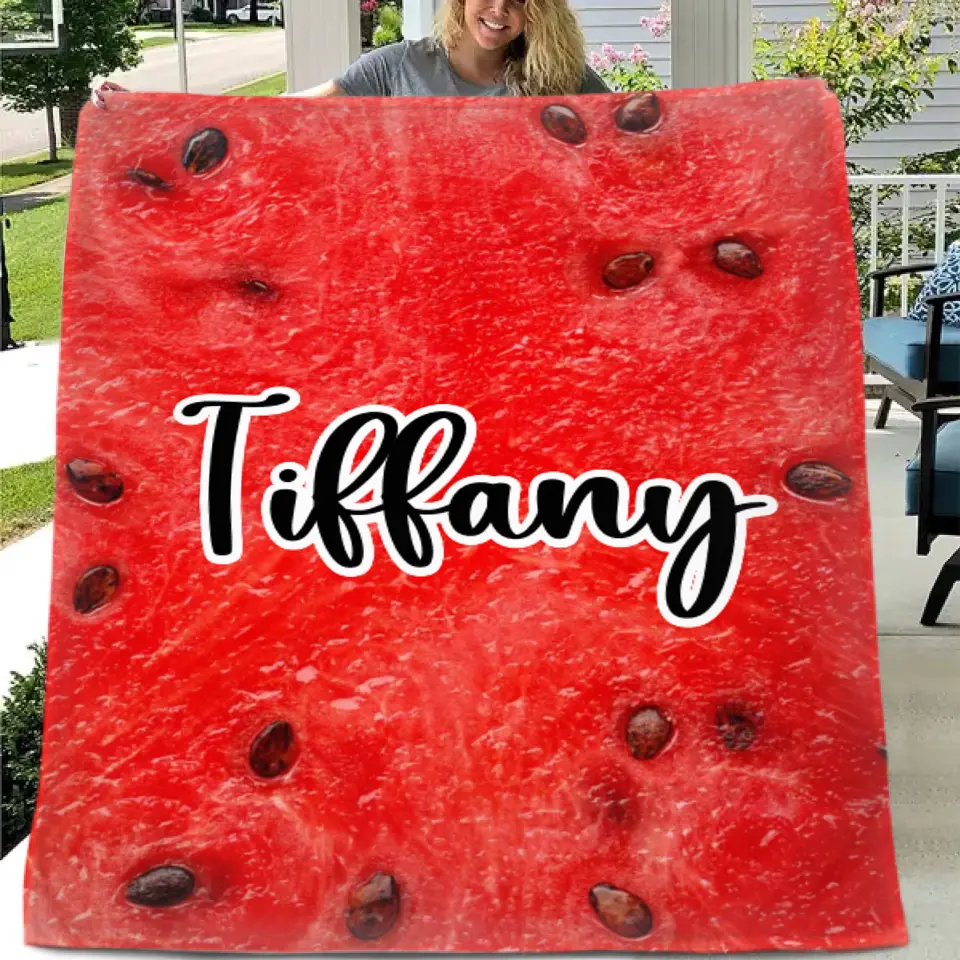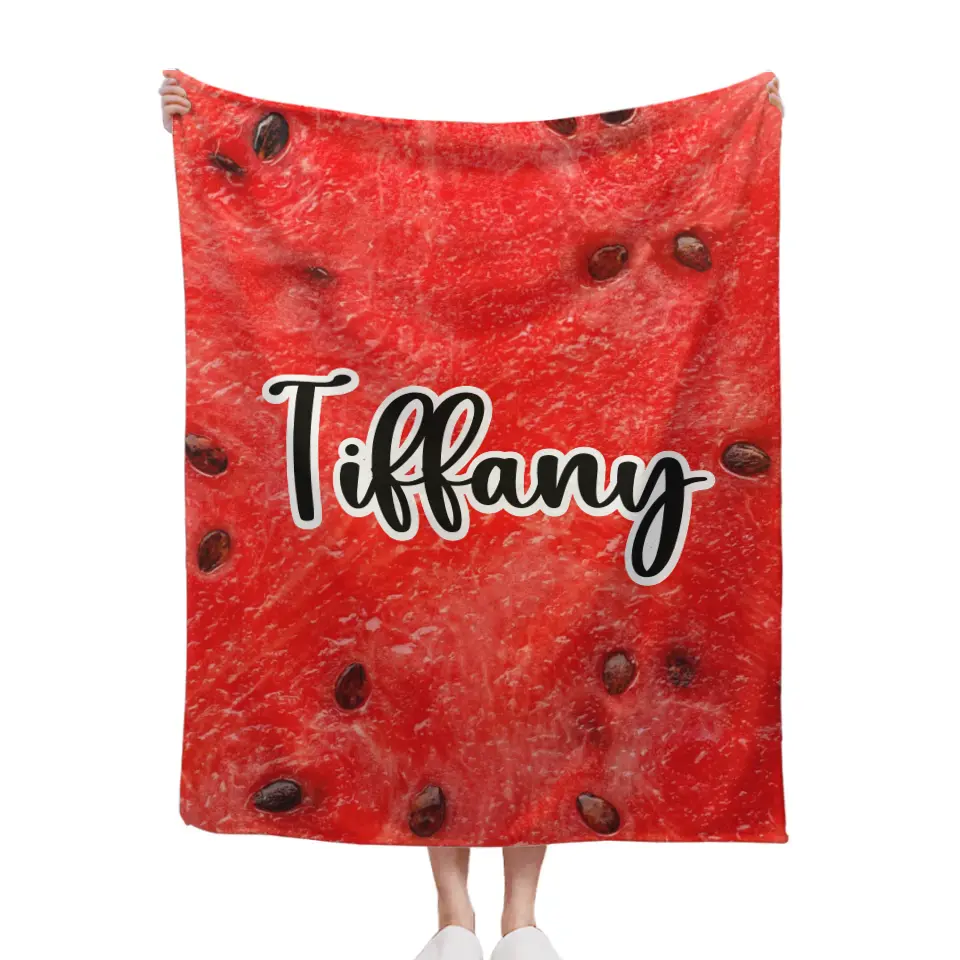 Name Customized Funny Watermelon Food Blanket, Gifts for Kids and Family and Friends