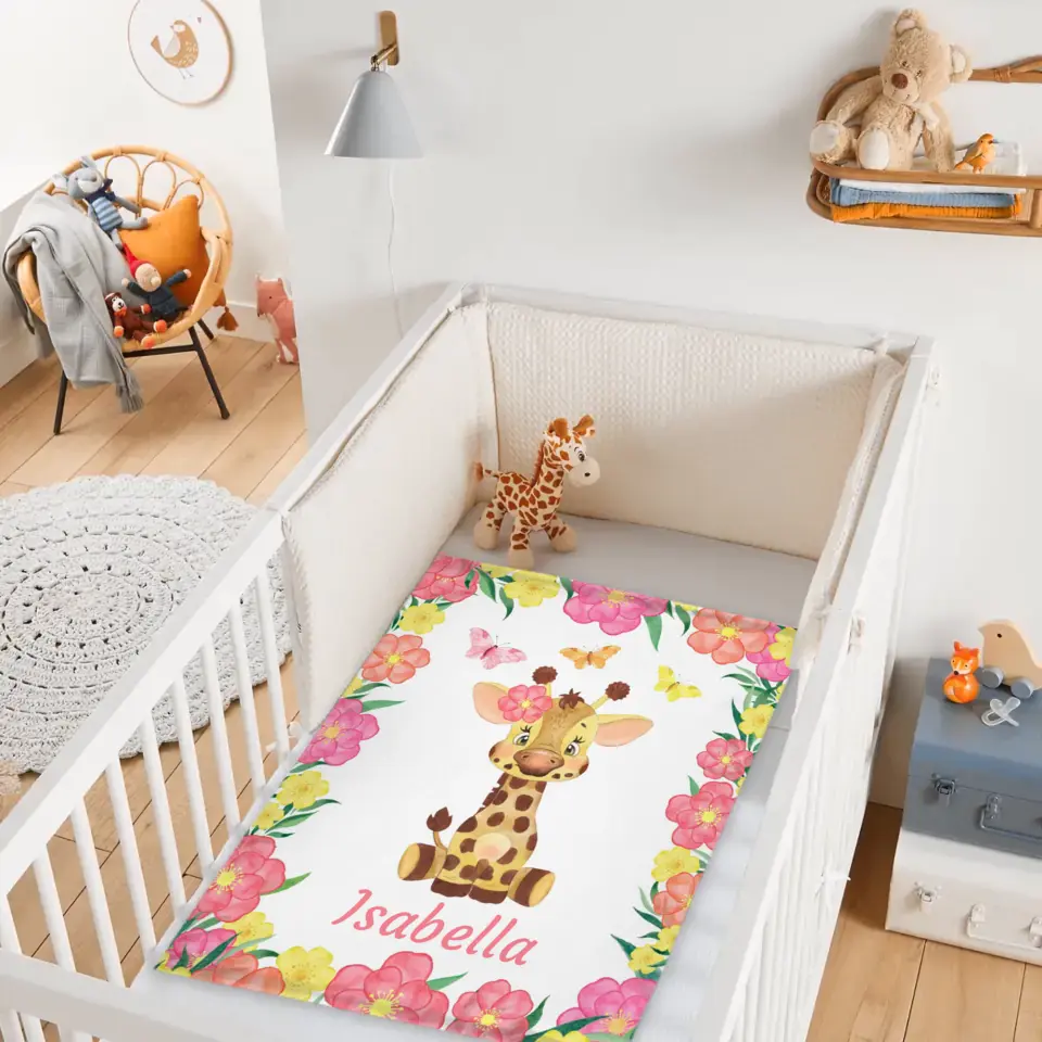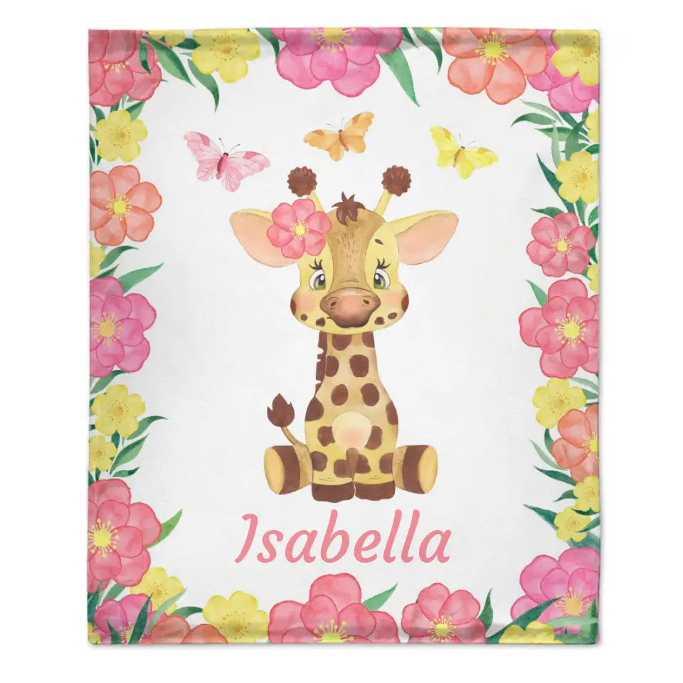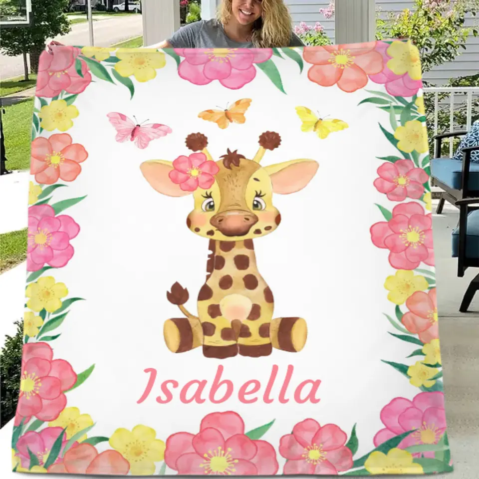Personalized Adorable Deer Flower Edge Baby Blanket With Name