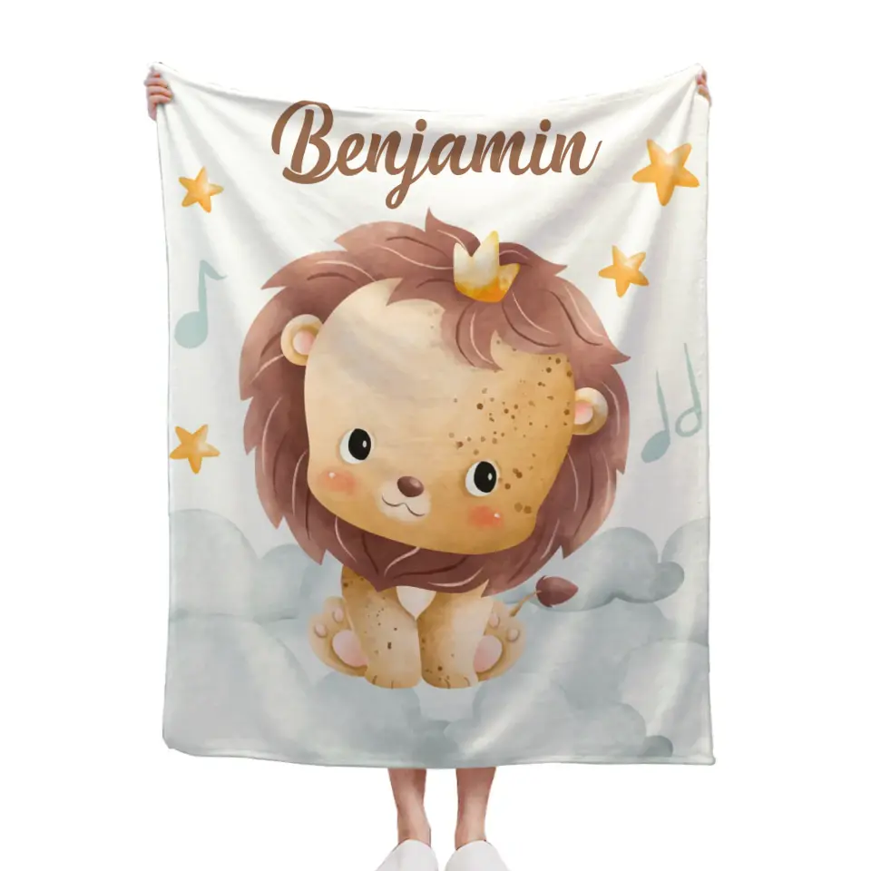 Personalized Baby Blanket for Girls Boys, Lion Custom Baby Blanket with Name
