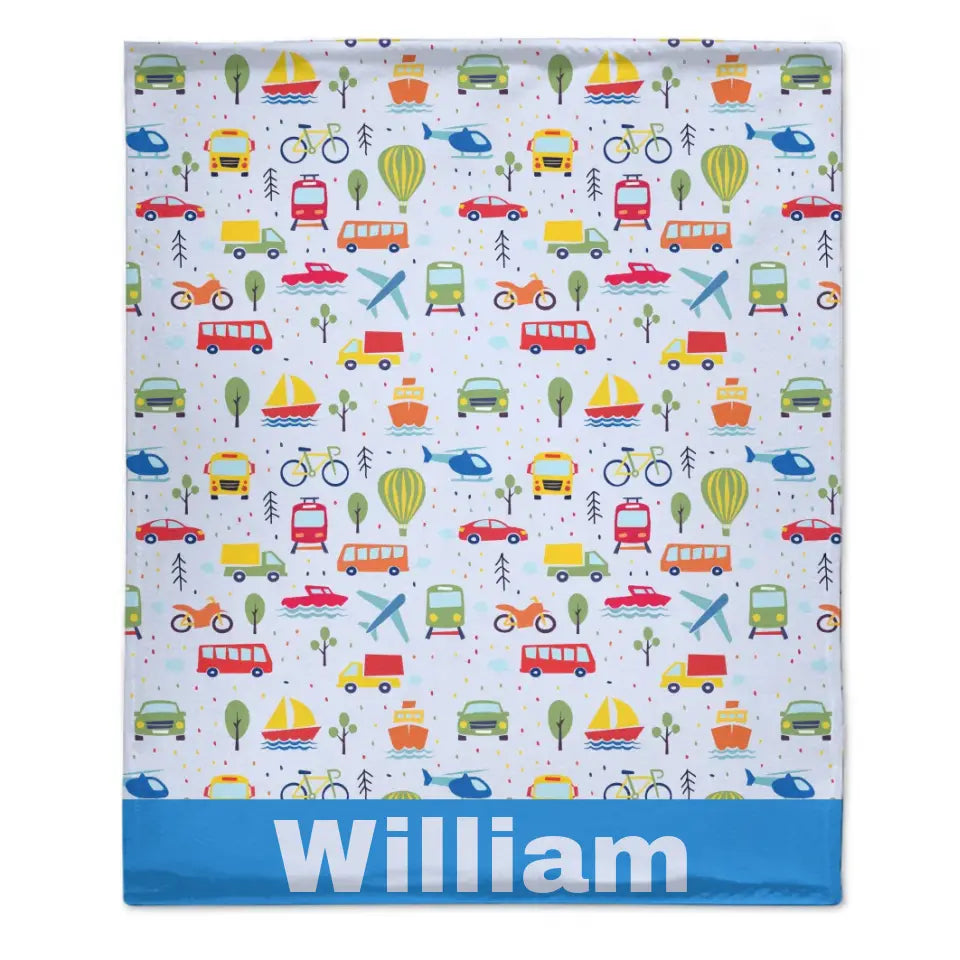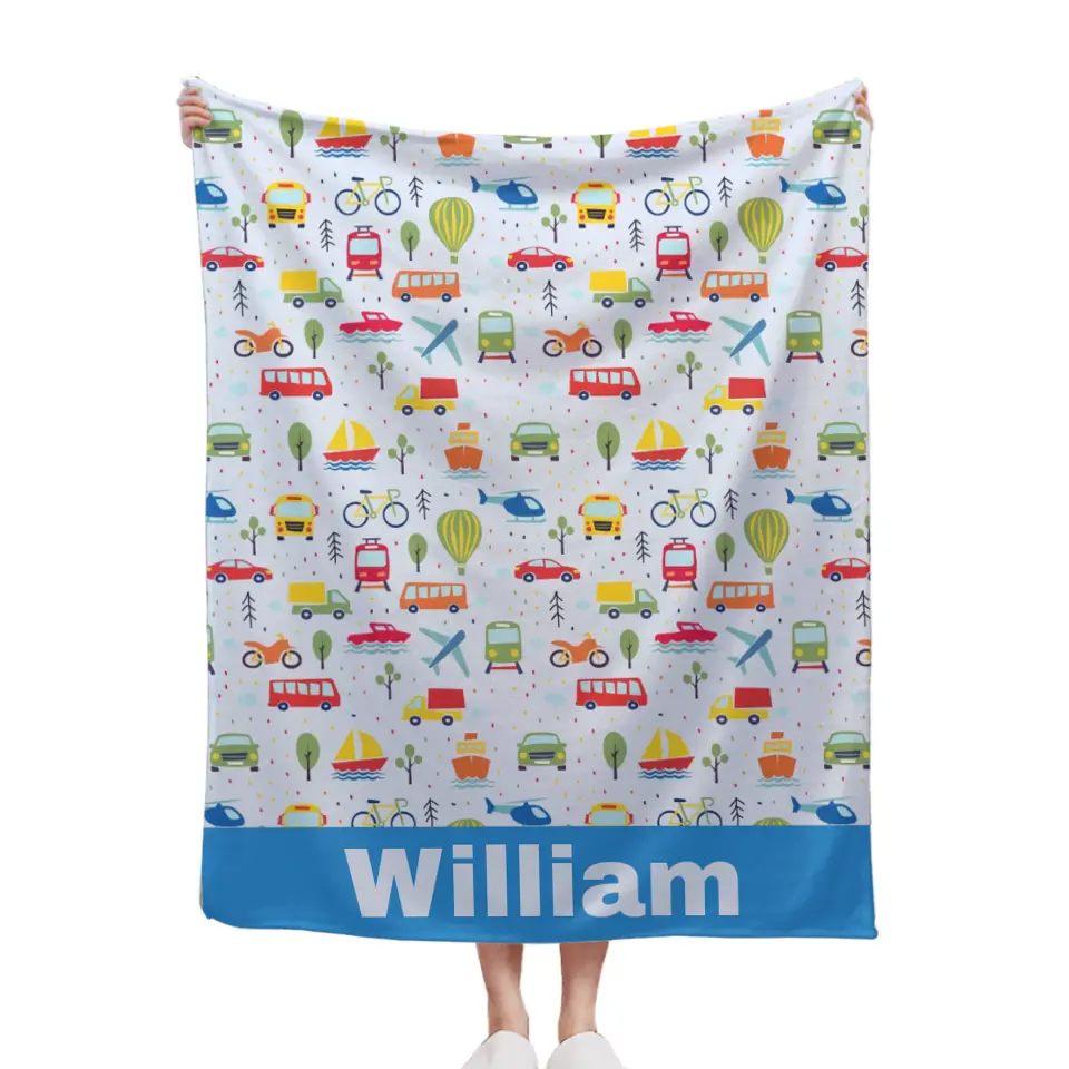 Personalized Baby Blanket with Name for Boys, Car Truck Aircraft Small Picture Blanket for Toddlers