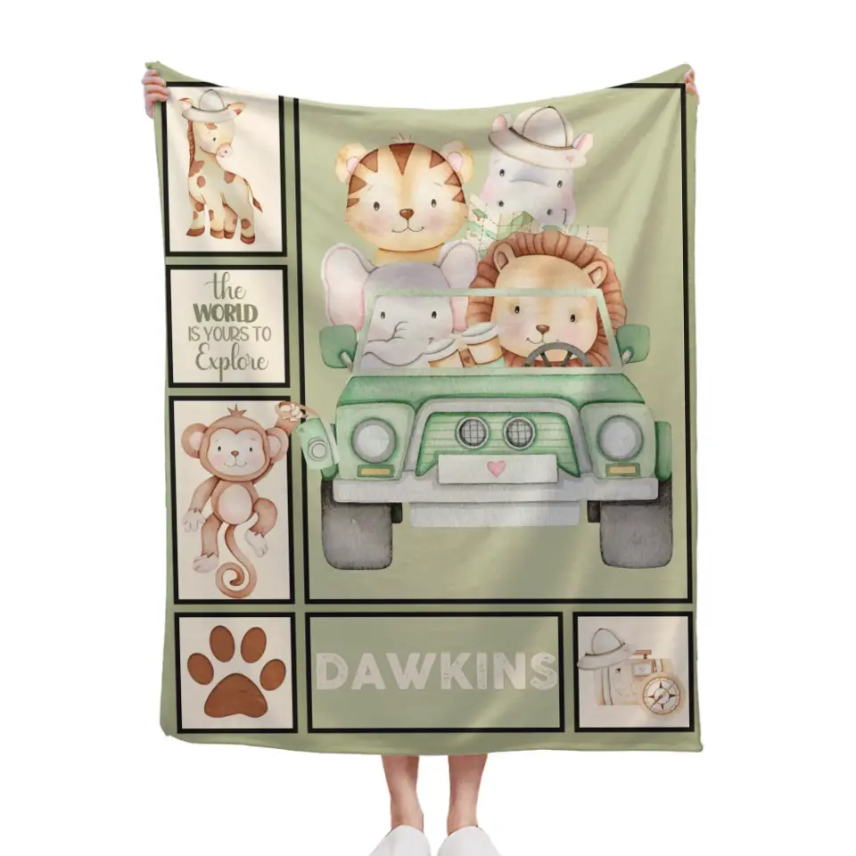 Personalized Boys Name Blanket - Lion Tiger Animals Bedroom Decor, The World Is Yours to Explore