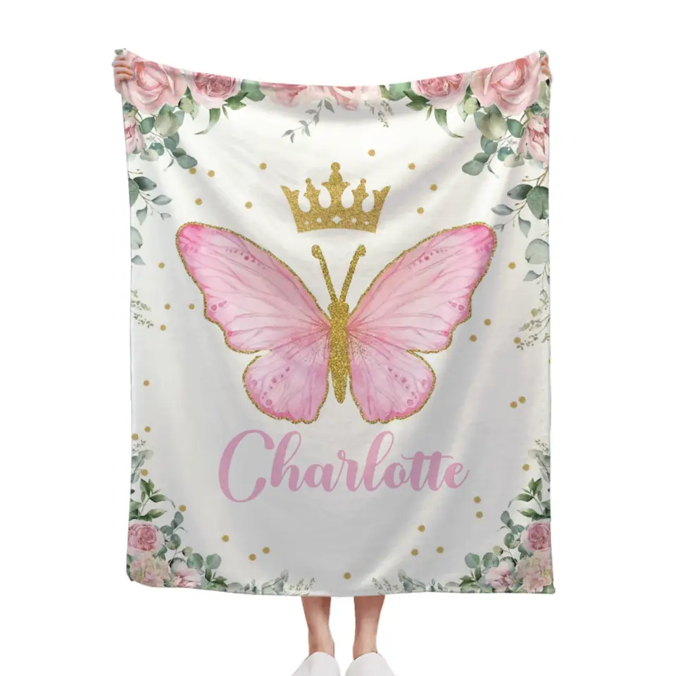 Personalized Custom Baby Girl Blanket - Baby Girl Name Butterfly Receiving Blankets