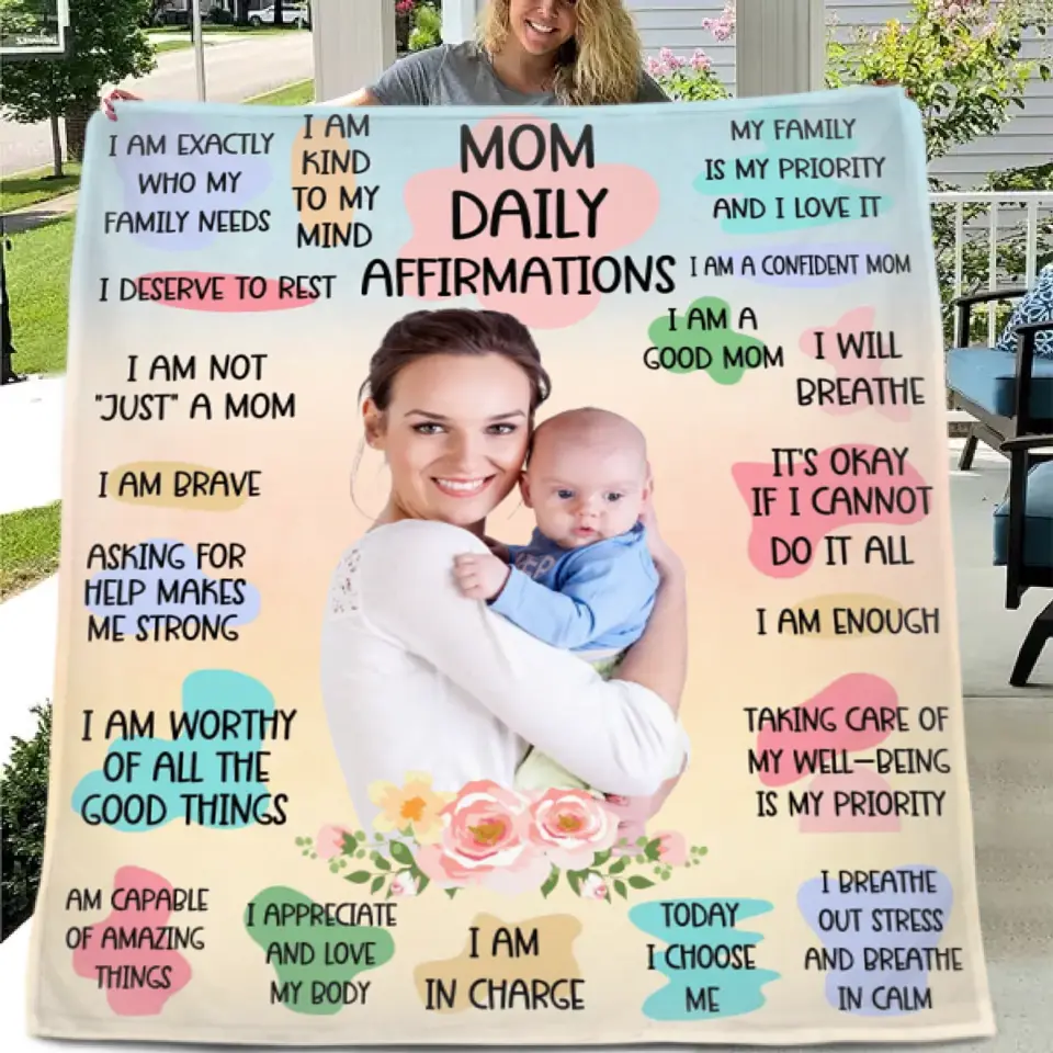 Personalized Custom Mom and Daughter Photo Blanket - Mom Daily Affirmations