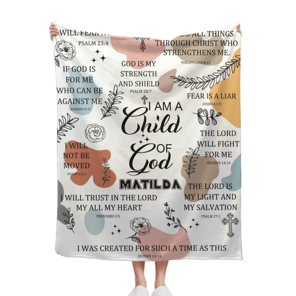 Personalized Custom Name Blanket - I Am A Child Of God Blanket, Bible Verse Blanket