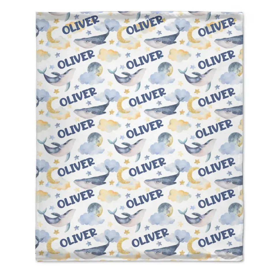 Personalized Custom Whales Boy, Girl Soft Name Blanket - Sea Creatures Kids Name Blanket