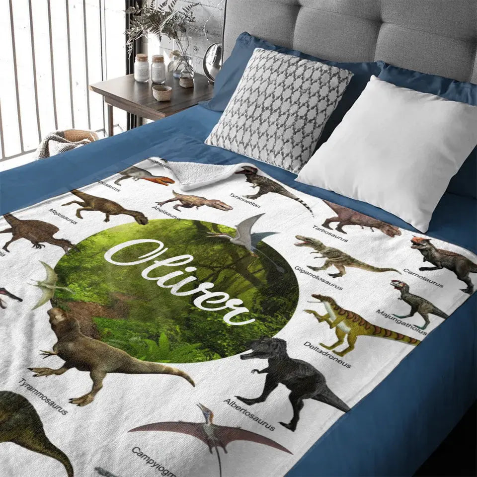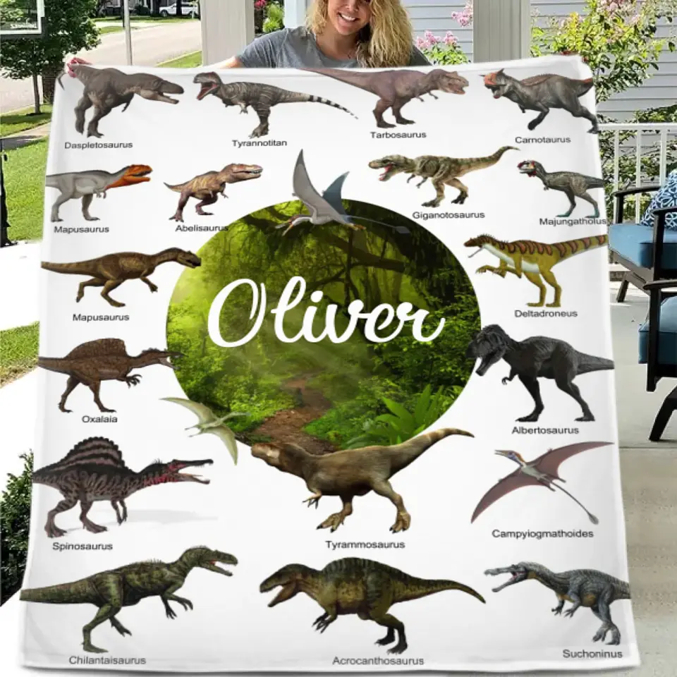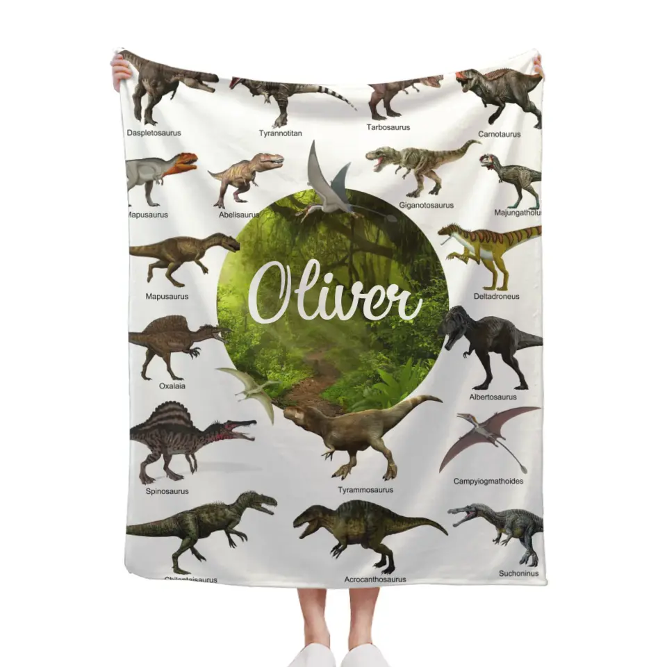 Personalized Dinosaur Custom Throw Blanket Jurassic Dinosaur World Park Theme - Gift For Kids