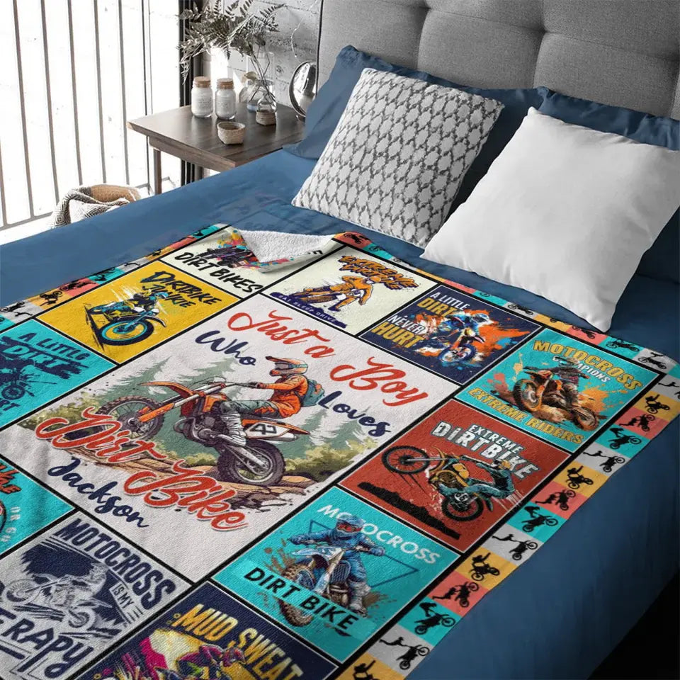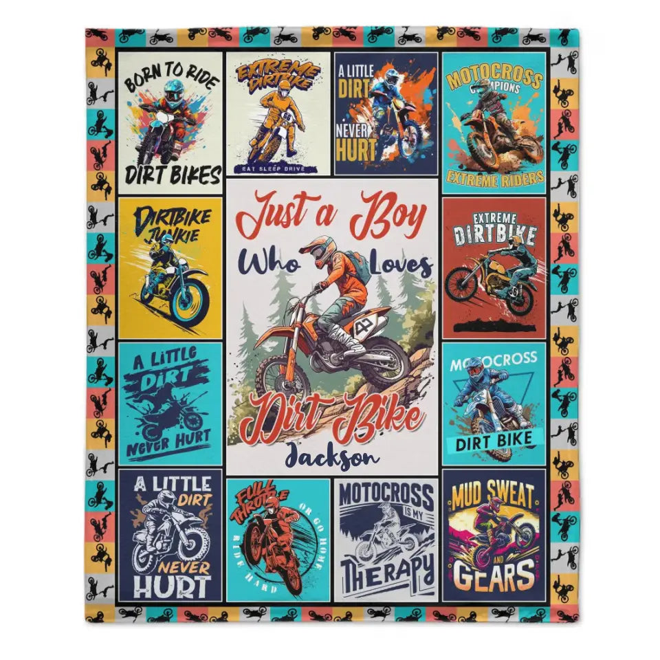 Personalized Dirt Bikes Blanket for Boys Kids Teens - Just a Boy Who Loves Dirt Bikes