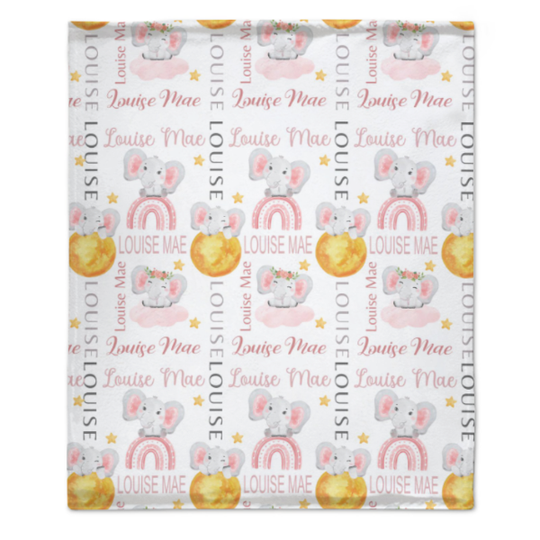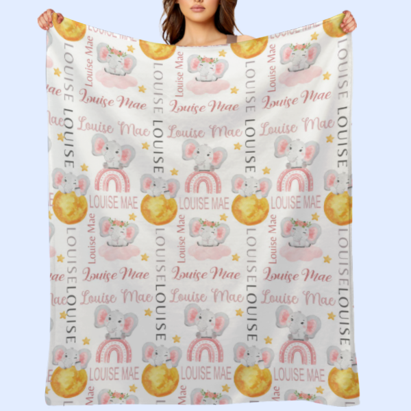 ️ Personalized Elephant Moon and Stars Baby Blanket