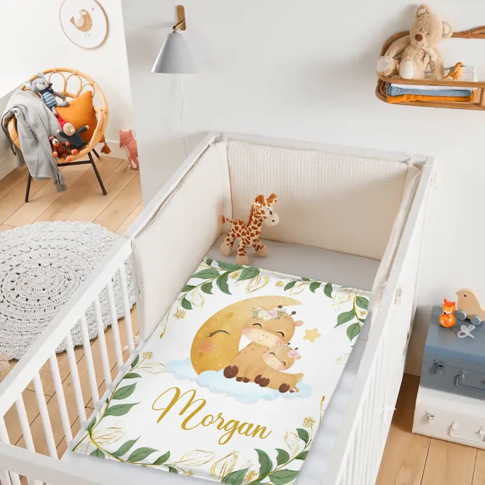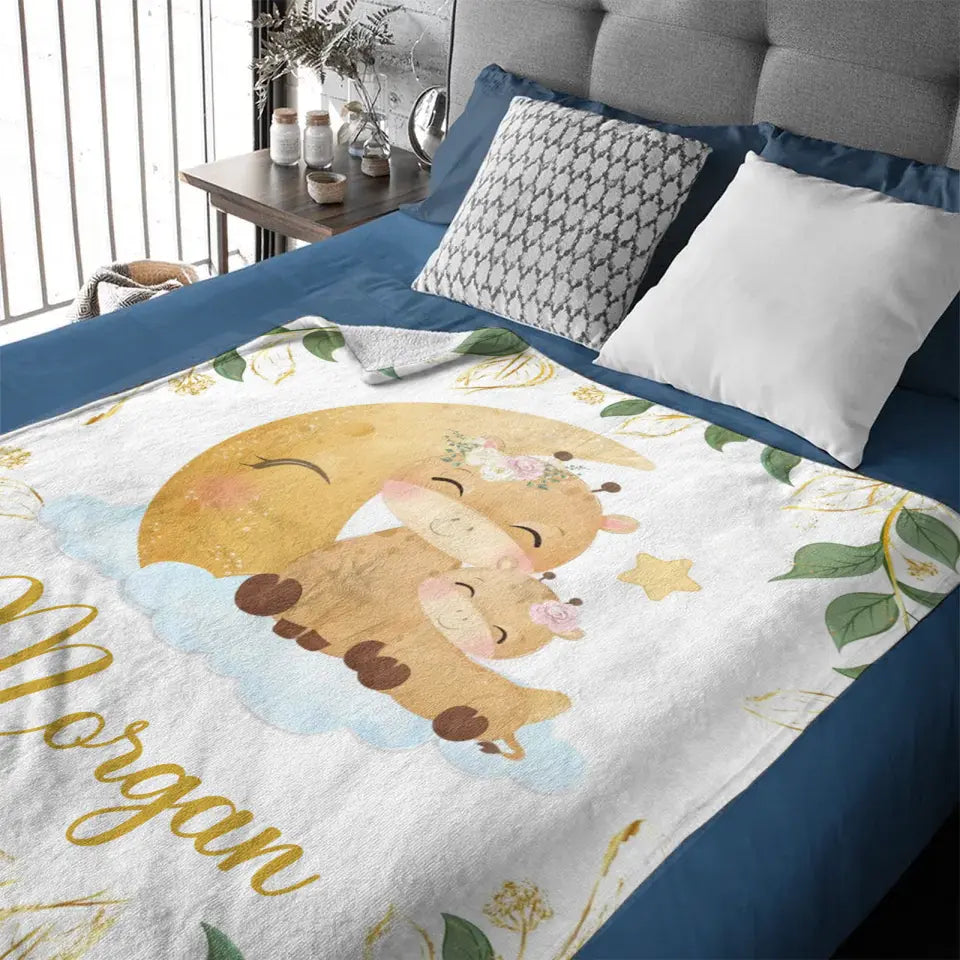 Personalized Giraffe Baby Blankets for Girls Boys - Customized Baby Blanket with Name