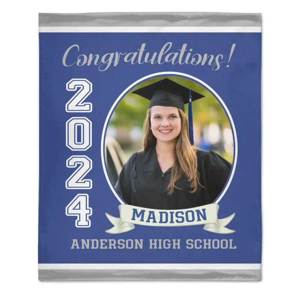 Personalized Graduation Blanket 2024 Graduate, Custom Photo,Name And School