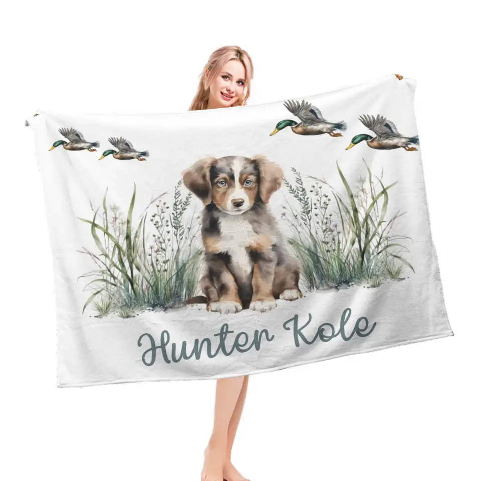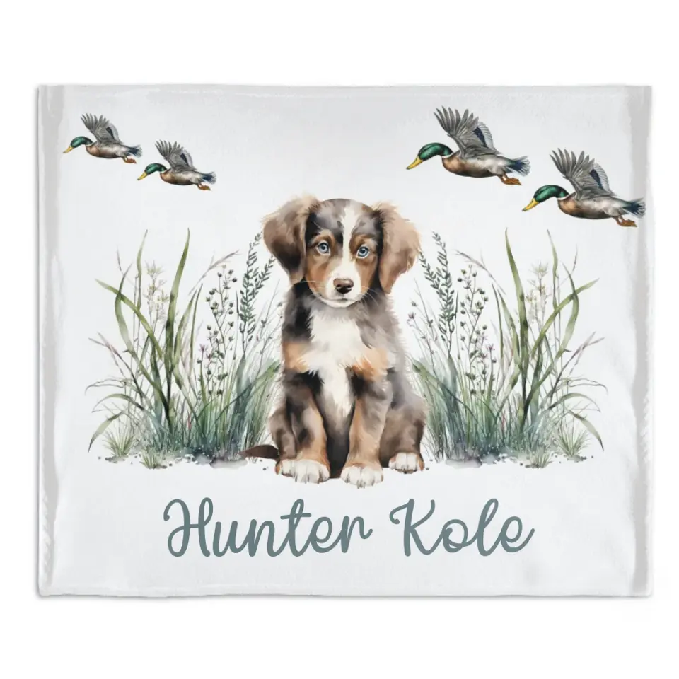 Personalized Mallard Duck Puppy Baby Blanket Gift