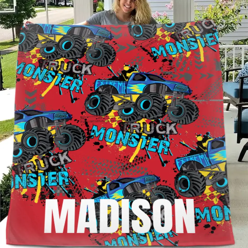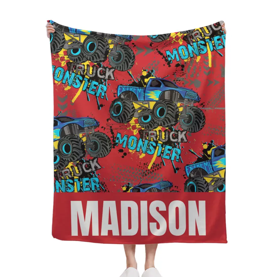 Personalized Monster Truck Name Custom Blanket, Customized Kids Birthday Gift Ideas