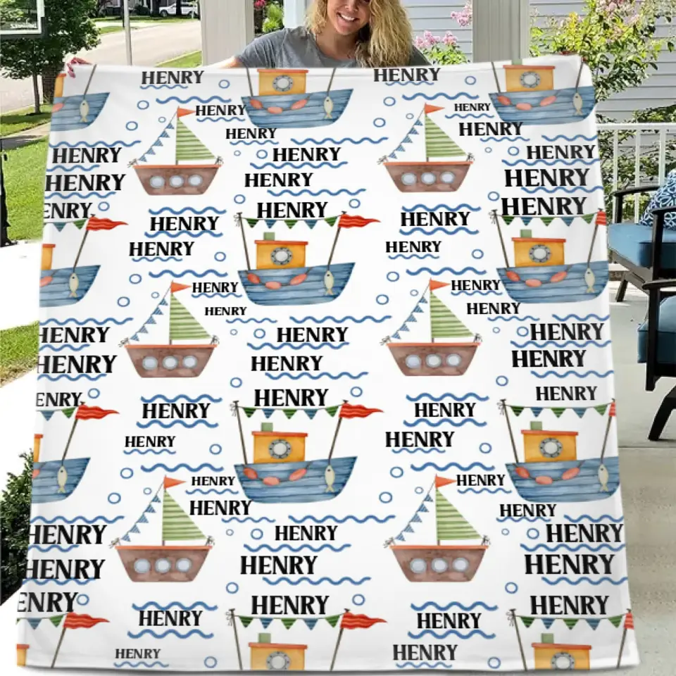 Personalized Nautical Baby Custom Name Blanket