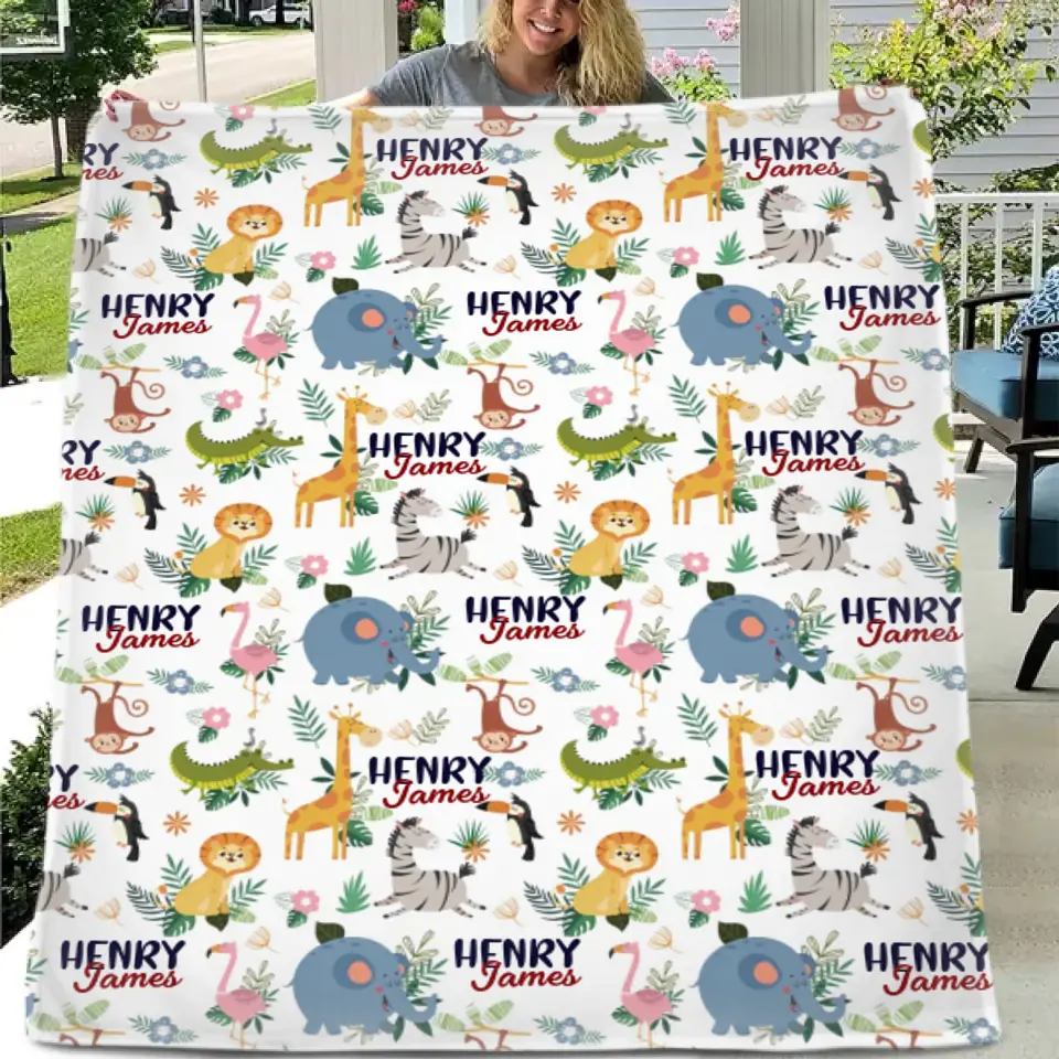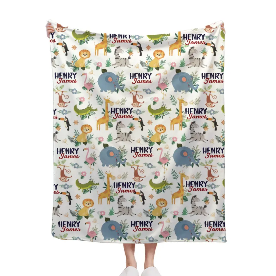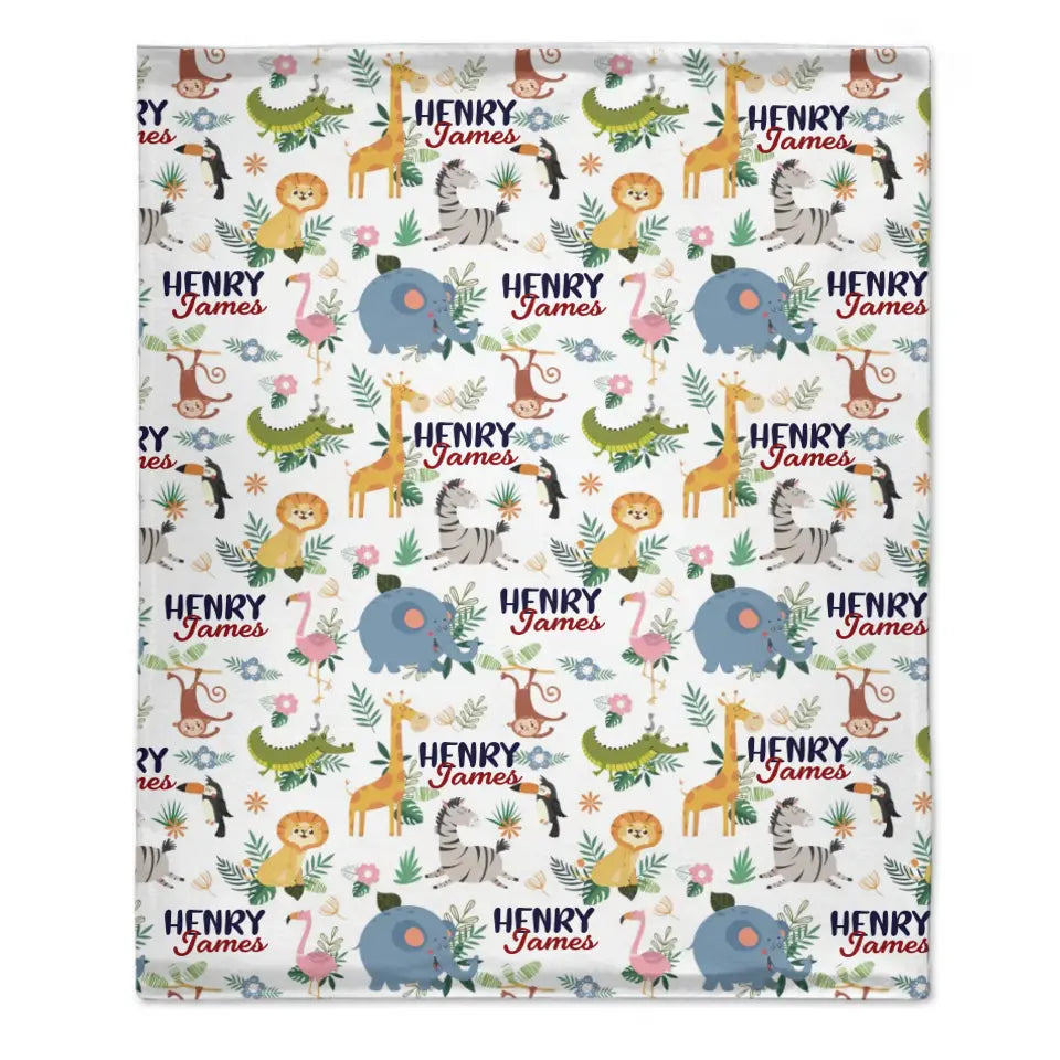 Personalized Smiling Animals Name Blanket