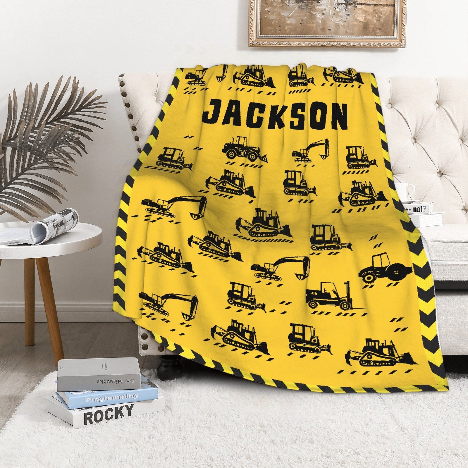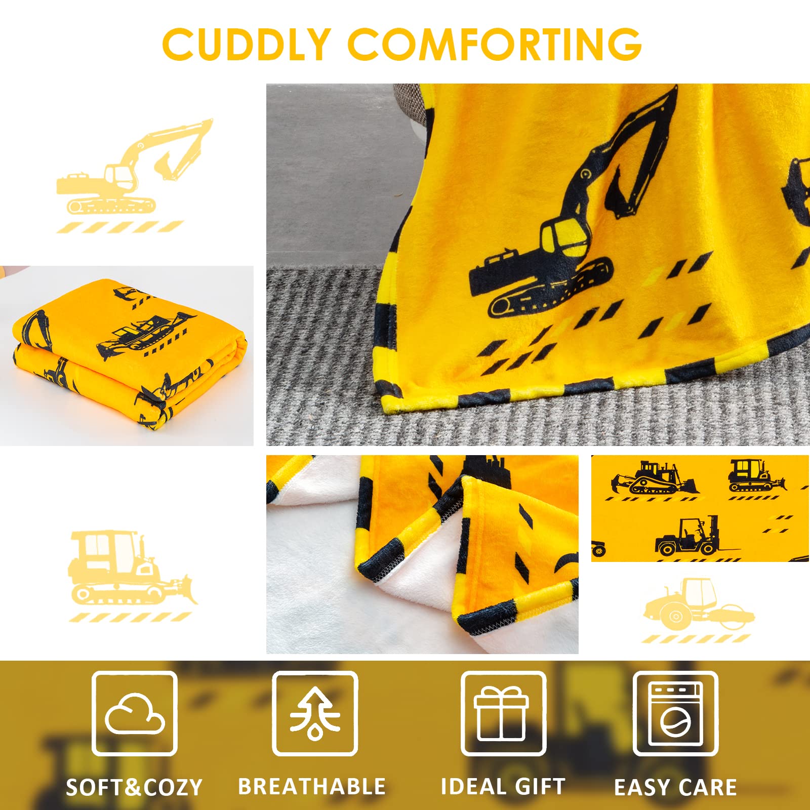 Then this yellow engineering vehicle blanket for boys would be the best choice!!!