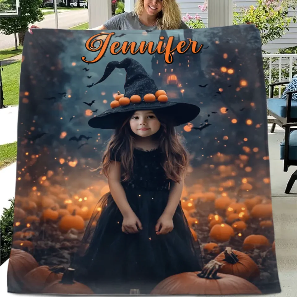Pumpkin Castle - Personalised Witch Photo Halloween Blanket - Gifts for Children